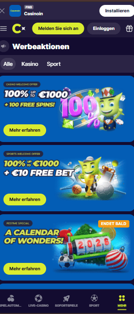Neben dem Willkommensbonus bietet Casinoin seinen Bestandskunden regelmäßig weitere Aktionen, um die Loyalität zu belohnen und das Wettvergnügen aufrechtzuerhalten.